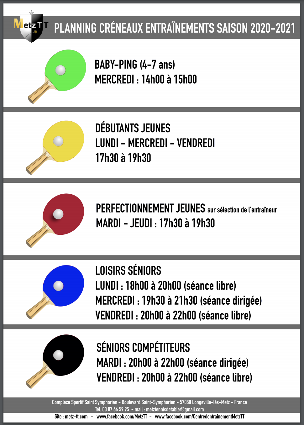 Horaires Entraînement