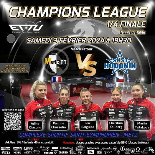 Comme l'an dernier, venez en masse encourager les Filles du Metz TT en Ligue des Champions !
