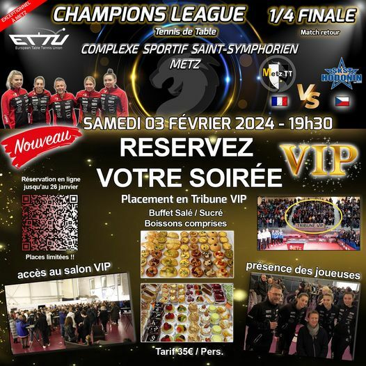 Profitez de la Champions League de tennis de Table comme jamais auparavant avec nos places VIP.