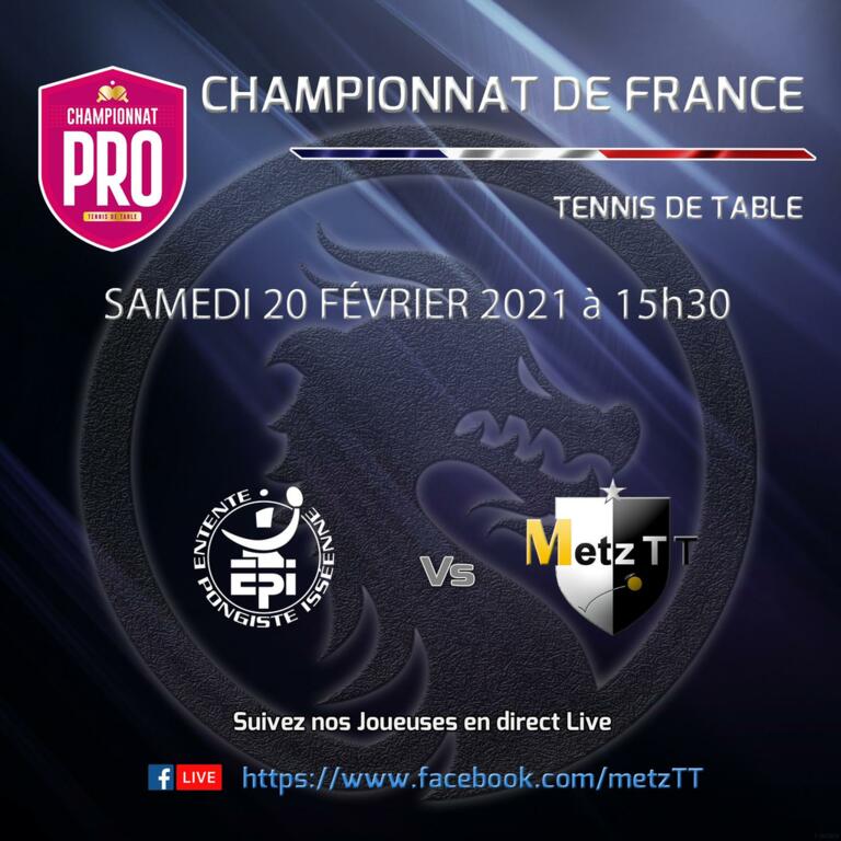 Ce samedi à 15h30, l'équipe féminine du Metz Tennis de Table conclura sa saison régulière de PRO Dames par un déplacement à Issy-les-Moulineaux pour y affronter l'Entente Pongiste Isséenne. La rencontre sera en suivre en live sur notre page Facebook.