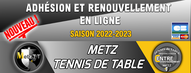 Les adhésions et les Renouvellements de licence METZ TT 2022/2023 sont en ligne !