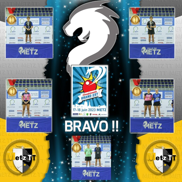 Le Metz Tennis de Table remporte 5 titres de champion du Grand Est et un total de 16 médailles pour cette édition 2023 qui s'est déroulée à domicile.