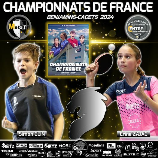 Érine Zajac et Simon Clin du Metz TT affronteront à partir de demain les meilleures joueuses et les meilleurs joueurs de l’hexagone lors des Championnats de France Benjamins/Cadets 2024 à Arnas, dans le Rhône, accompagnés de leur coach Gérald Didier.