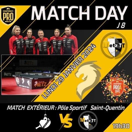 Premier déplacement de la semaine, l'équipe de Pro A Dames du Metz Tennis de Table affronte ce soir le TT Saint-Quentin, 2 ème du classement.