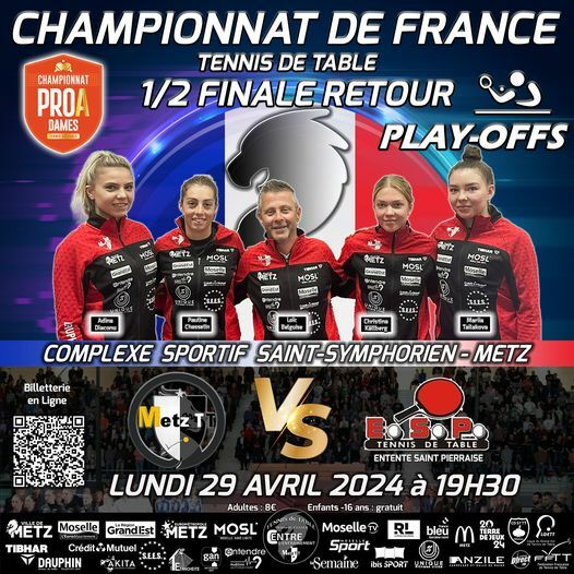 La 1/2 Finale Retour du Championnat de France de Pro A Dames 2024 se déroulera au complexe sportif Saint Symphorien de Metz.