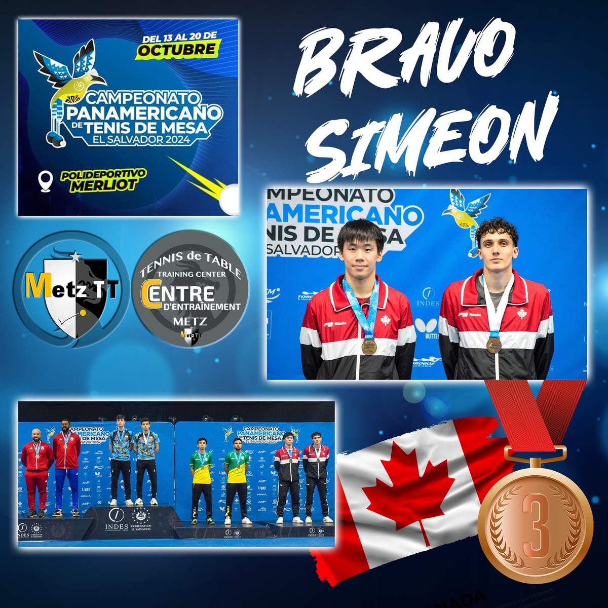 Siméon Martin , joueur du Metz TT et pilier du centre d'entraînement du club, s'empare de la troisième place sur le podium en double Messieurs aux côtés de son compatriote Edward Ly lors des Championnats Panaméricains 2024 à San Salvador .
