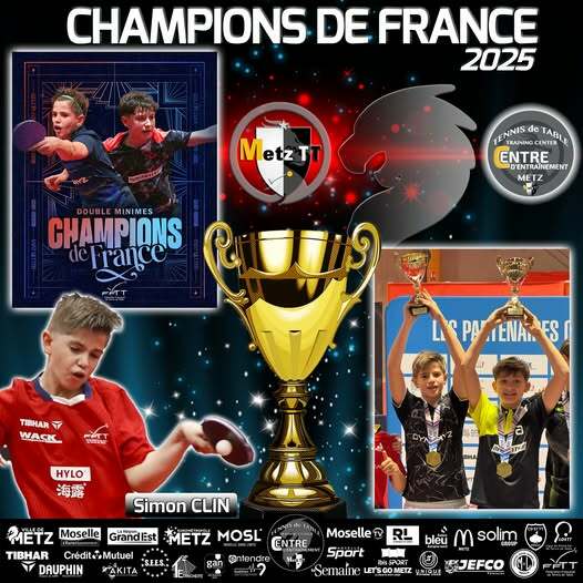 Félicitations à Simon Clin (Metz Tennis de Table) et à Jean Marin (CL Marsannay TT) pour leur magnifique titre de Champions de France en double minimes !