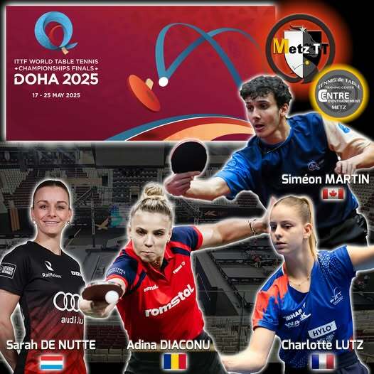 Nous avons l’immense fierté de vous annoncer la participation de quatre joueurs du Metz Tennis de Table aux Championnats du Monde de Tennis de Table qui se dérouleront du 17 au 25 mai ! – ils représenteront fièrement le club et leurs pays sur la scène internationale à Doha 2025
