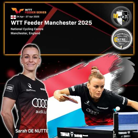aujourd’hui, la joueuse du Metz TT Sarah De Nutte est Angleterre pour le WTT Feeder Manchester 2025 !