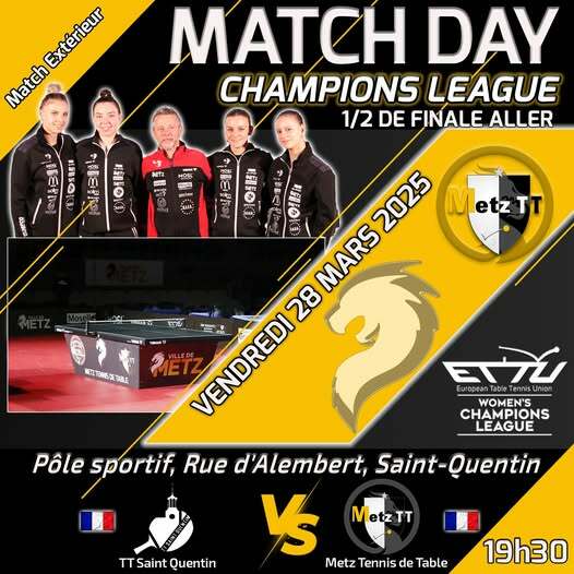 L’équipe Pro A Dames du Metz TT se rend chez nos voisins du TT Saint-Quentin pour un duel au sommet. Objectif : prendre une option sur la finale dès ce premier acte !