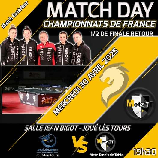 Après leur qualification pour la finale de la Champions League hier soir à domicile, l’équipe de Pro A Dames du Metz TT se rend à Joué-lès-Tours pour un duel au sommet. Objectif : la finale !