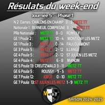 Voici les résultats de la 5ème journée de championnat de la 1ère phase pour le Metz TT